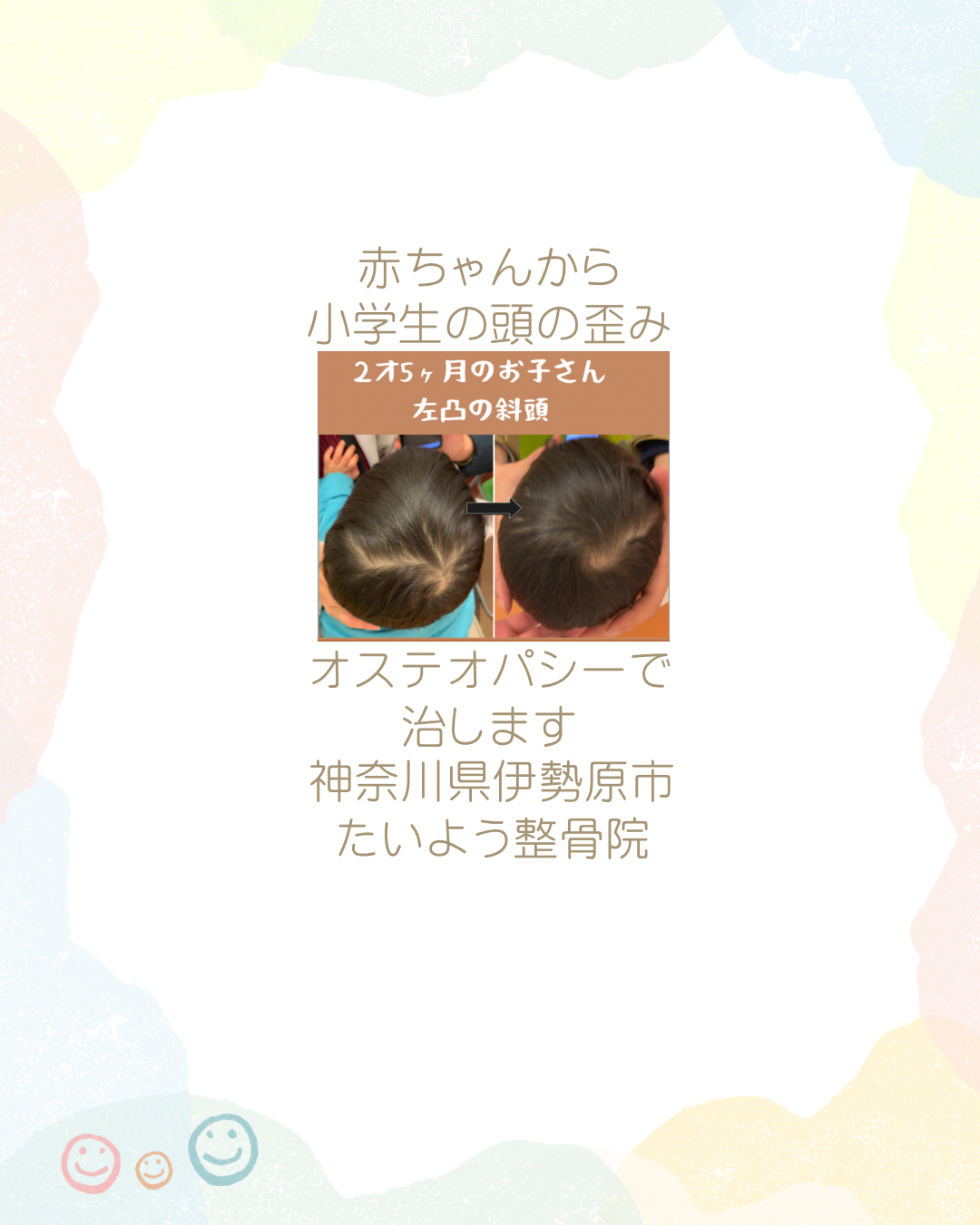 ⚪️神奈川県伊勢原市「たいよう整骨院」では赤ちゃんから小学生までの頭の歪み・発達サポートを行っています