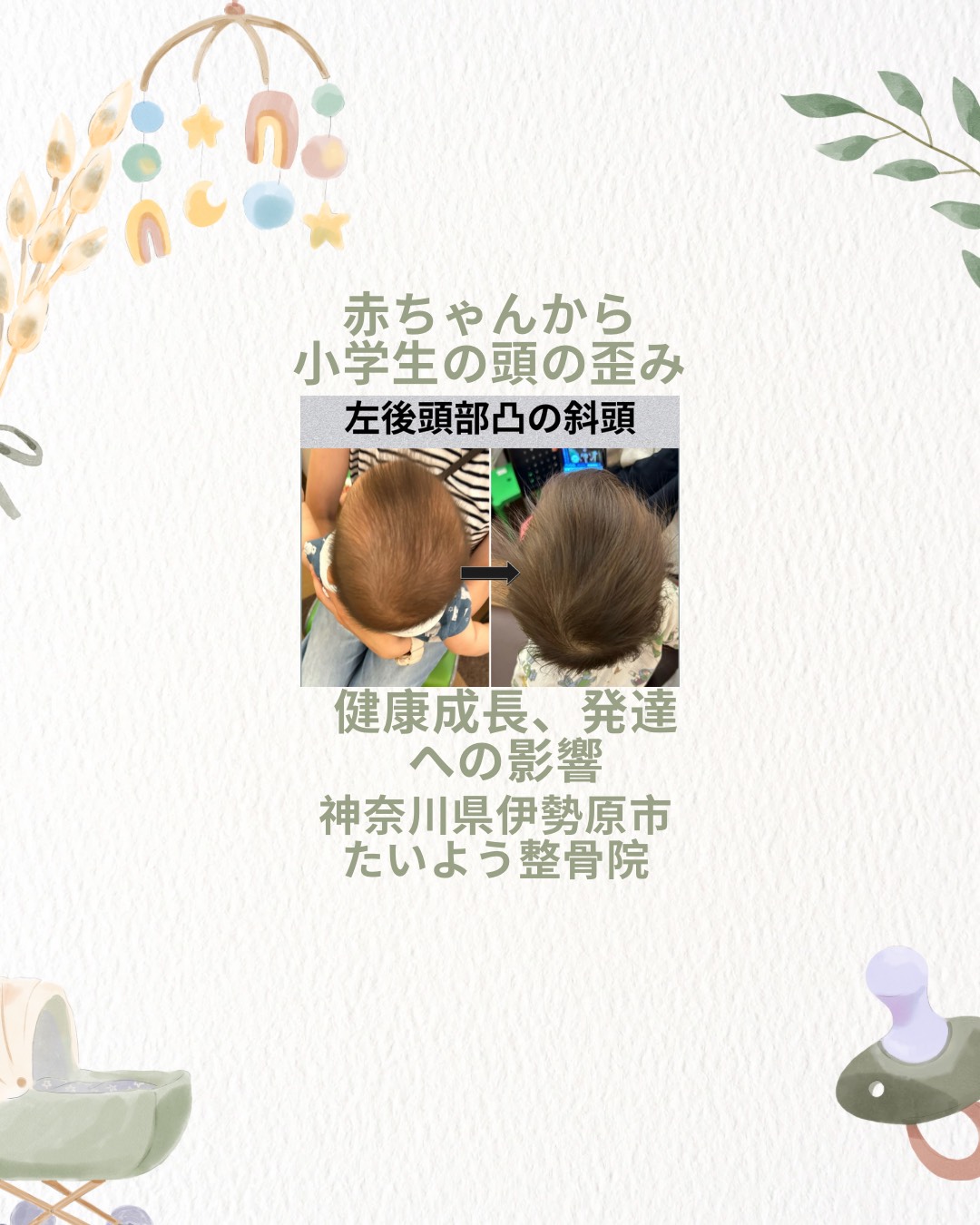 ⚪️神奈川県伊勢原市「たいよう整骨院」では赤ちゃんから小学生までの頭の歪み・発達サポートを行っています