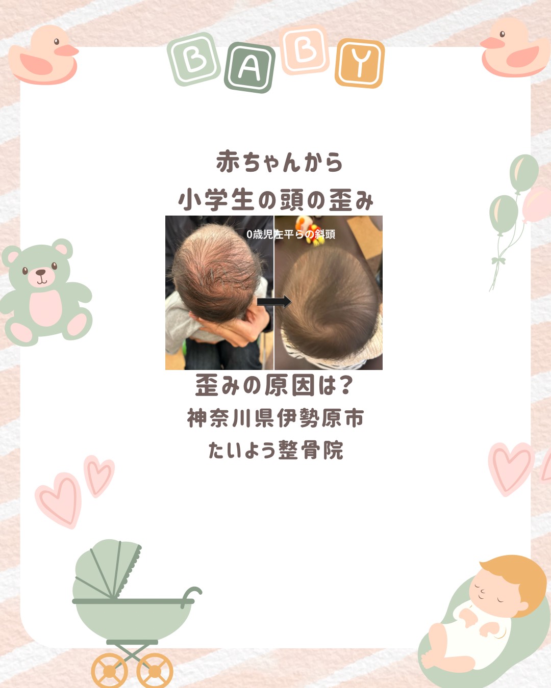 ⚪️神奈川県伊勢原市「たいよう整骨院」では赤ちゃんから小学生までの頭の歪み・発達サポートを行っています