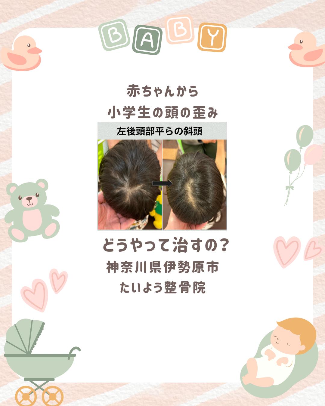 ⚪️神奈川県伊勢原市「たいよう整骨院」では赤ちゃんから小学生までの頭の歪み・発達サポートを行っています