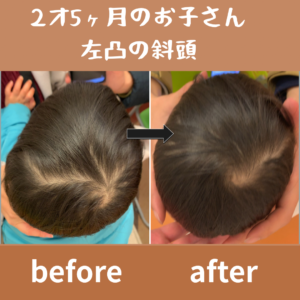 当院では生後1ヶ月の赤ちゃんから小学生高学年まで、頭の歪みや斜頭、絶壁、短頭症、向きグセなどを対象に、身体に負担の少ない手技療法で対応しています。